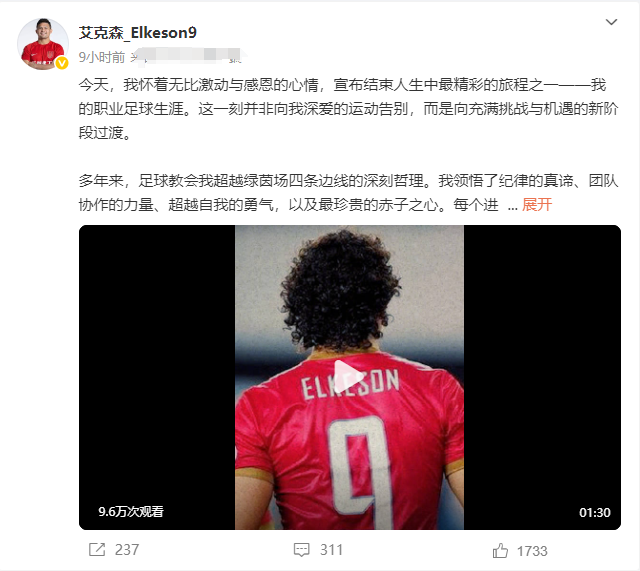 4月9日晚,35岁的中国足球归化时代标志性人物艾克森宣布退役,一代传奇谢幕。这位曾身披"中国红"的巴西裔射手,以职业生涯黄金岁月书写了中国足球的辉煌与争议,更留下关于归化政策价值的深刻思考。